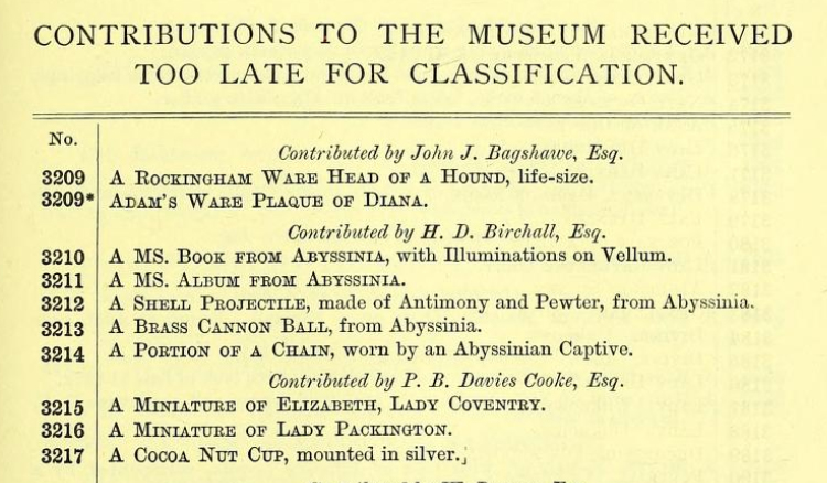 Published August 30, 2022 / by Andrew Heavens / Leave a CommentWhat: A brass cannon ball Where: Unknown Description One of 21 artefacts from the Abyssinian expedition put on show at the National Exhibition of Works of Art in Leeds in 1868 According to the exhibition’s catalogue, it was lent by H.D. (or J.D.) Birchall, Esq. of Leeds. There are no details on what happened to […]